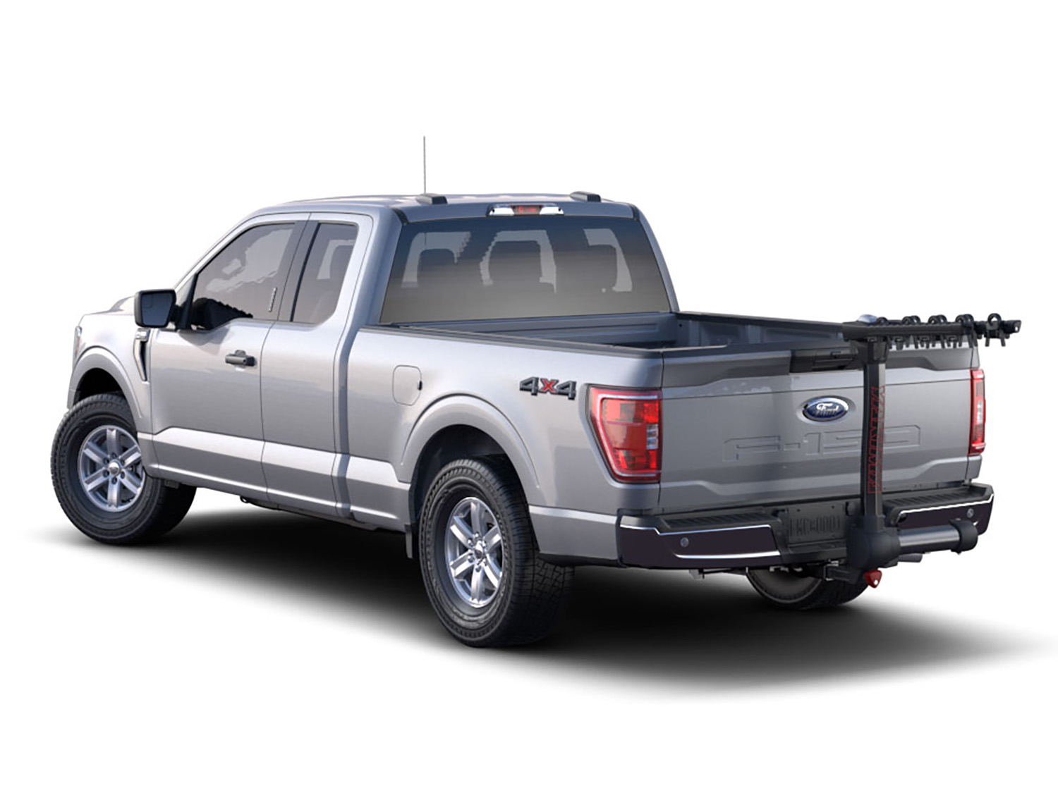 - Control lever tilts the rack away from the vehicle, folds flat for storage.